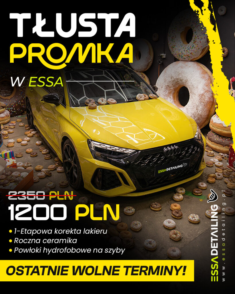 W ESSA Detailing stawiamy na konkrety. Tłusta promka to dopracowany pakiet dla kierowców, którzy chcą szybko i skutecznie odświeżyć wygląd auta, zabezpieczyć lakier i cieszyć się wyraźnym efektem wizualnym bez wchodzenia w droższe, wieloetapowe realizacje.